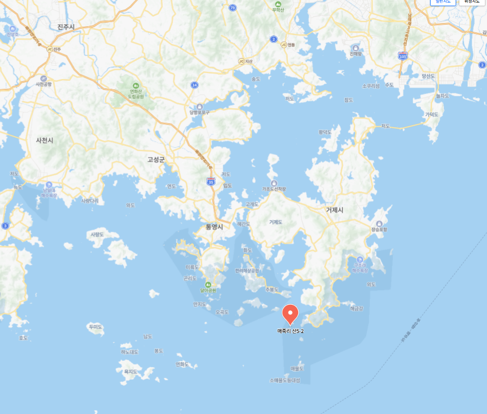 아름다운 남해 바다의 섬 토지를 매매합니다. 경상남도 통영시 한산면 매죽리 5-2번지 외12필지